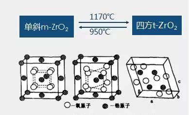在常壓下,純 ZrO2 共有三種晶態(tài):?jiǎn)涡保∕onoclinic)氧化鋯(m-ZrO2)、四方(Tetragonal)氧化鋯(t-ZrO2)和立方(Cubic)氧化鋯(c-ZrO2),上述三種晶型存在于不同的溫度范圍,并可以相互轉(zhuǎn)化: