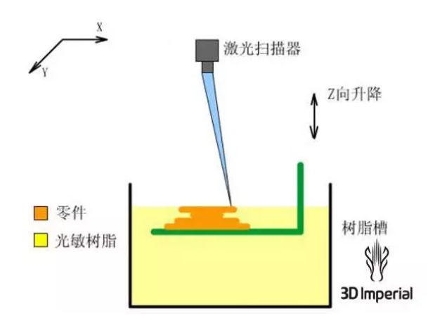 激光固化成型技術基本原理是通過紫外激光束,按照設計好的原件層截面,聚焦到工作槽中的陶瓷光敏樹脂混合液體,逐點固化,由點及線,由線到面。通過x-y方向固化成面后,通過升降臺在z軸方向的移動,層層疊加完成三維打印陶瓷材料。