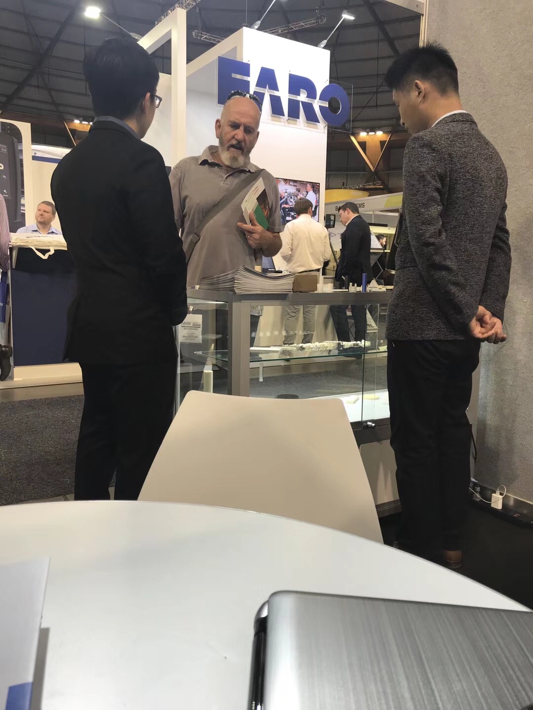 工作人員正在與外國客戶進(jìn)行洽談
